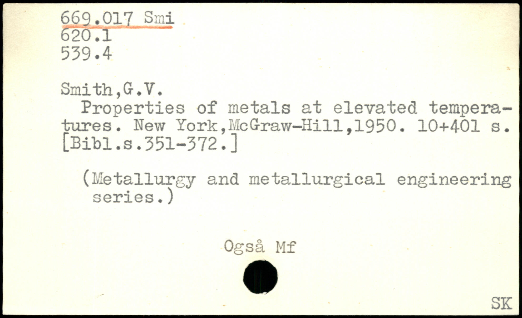 Smith, Gr.V. Properties of metals at elevated temperatures.