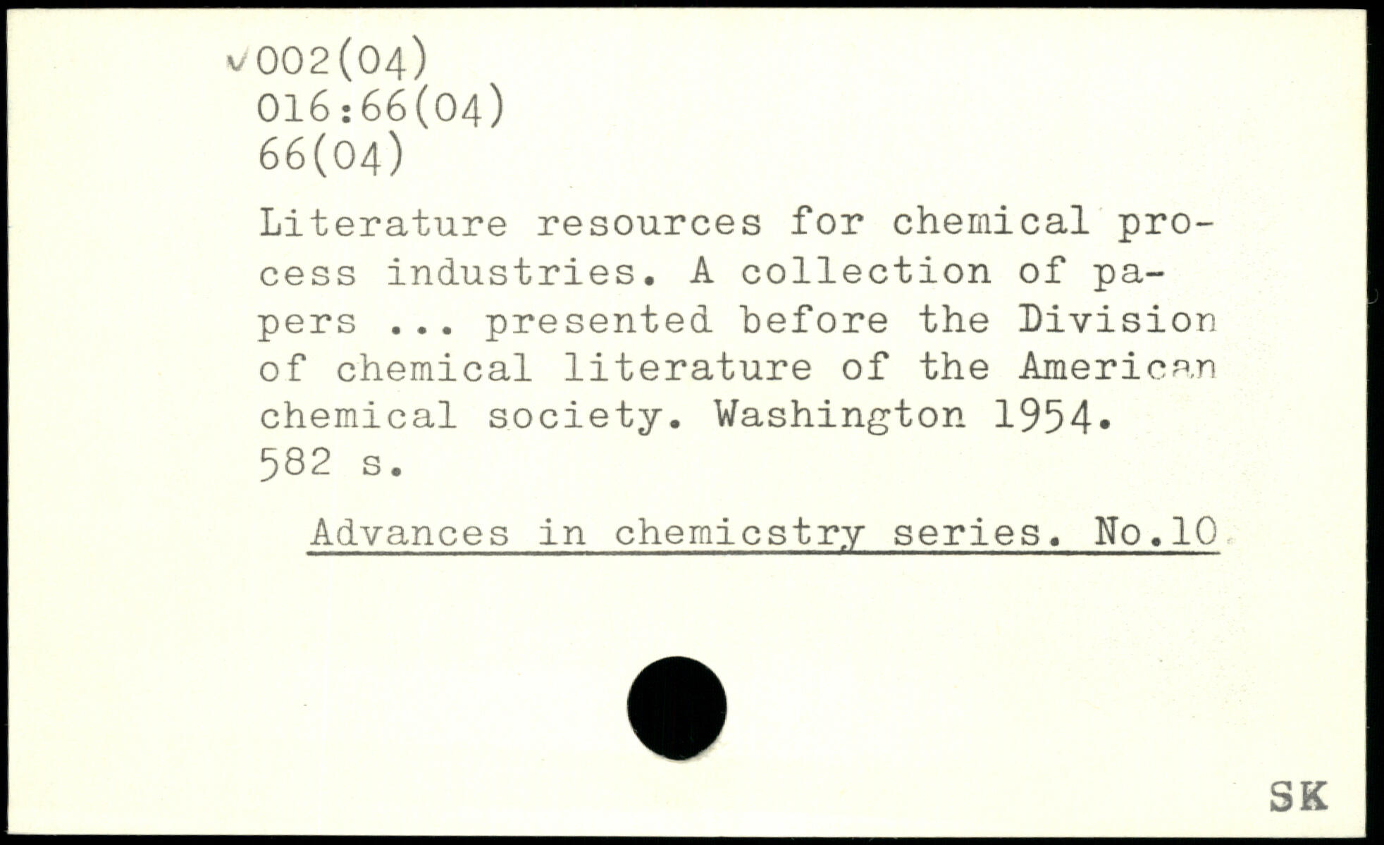 Literature resources for chemical process industries. A collection of papers ... presented before the Division i of chemical literature of the American chemical society.