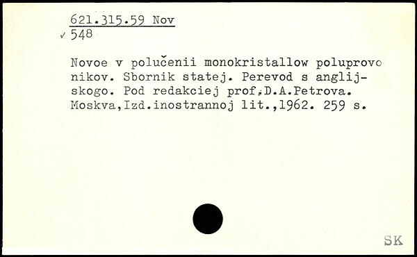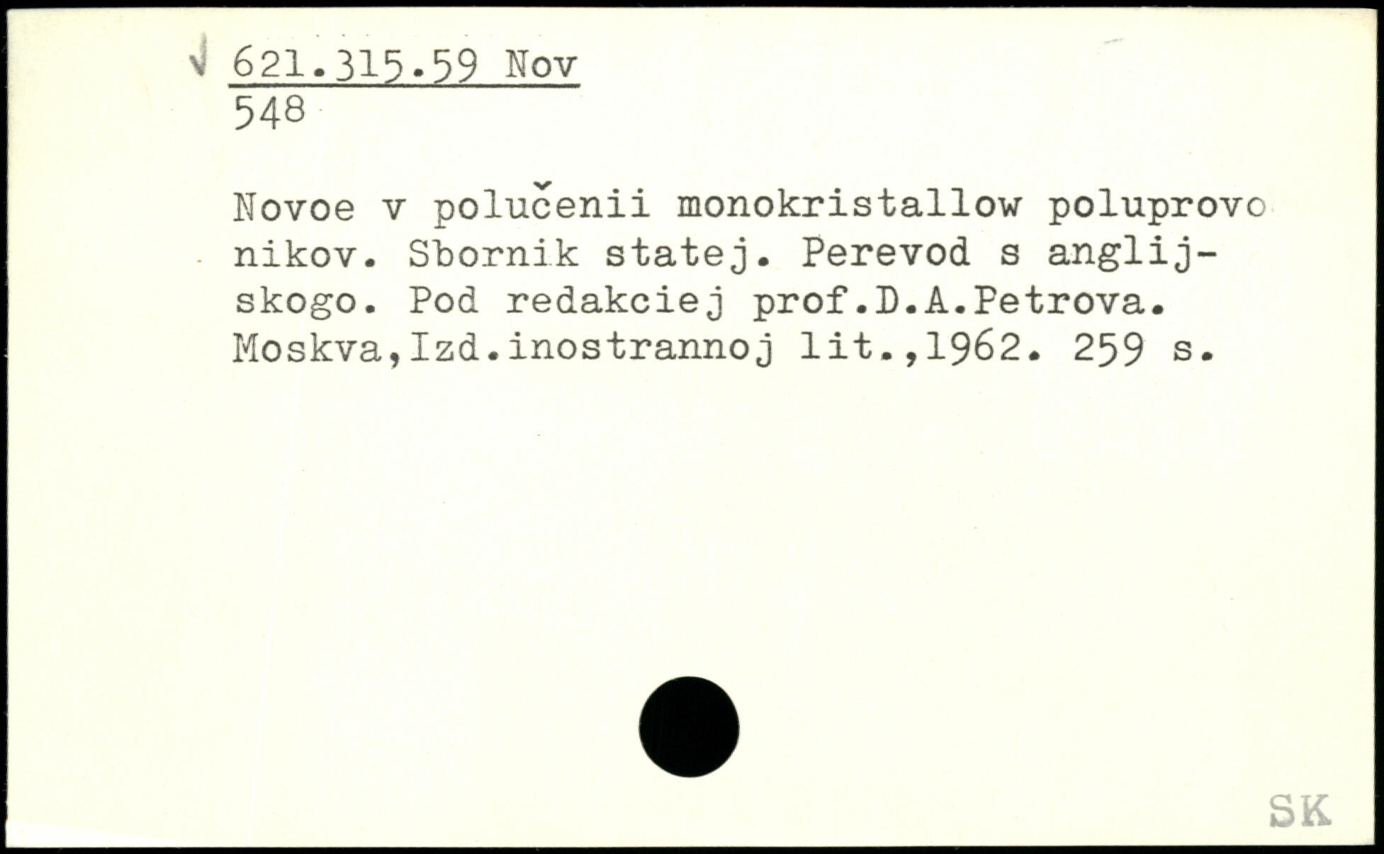 Novoe v polucenii monokristallow poluprovo nikov. Sbornik statej. Perevod s anglij-skogo. Pod redakciej prof.B.A.Petrova. Moskva,Izd.inostrannoj lit.,1962.
