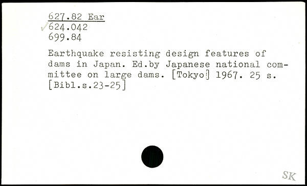 Earthquake resisting design features of dams in Japan. Ed.by Japanese national committee on large dams. [Tokyo’] 1967.