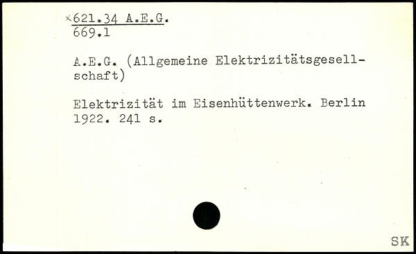 A.E.G-. (Allgemeine Elektrizitätsgesellschaft) Elektrizität im Eisenhüttenwerk.
