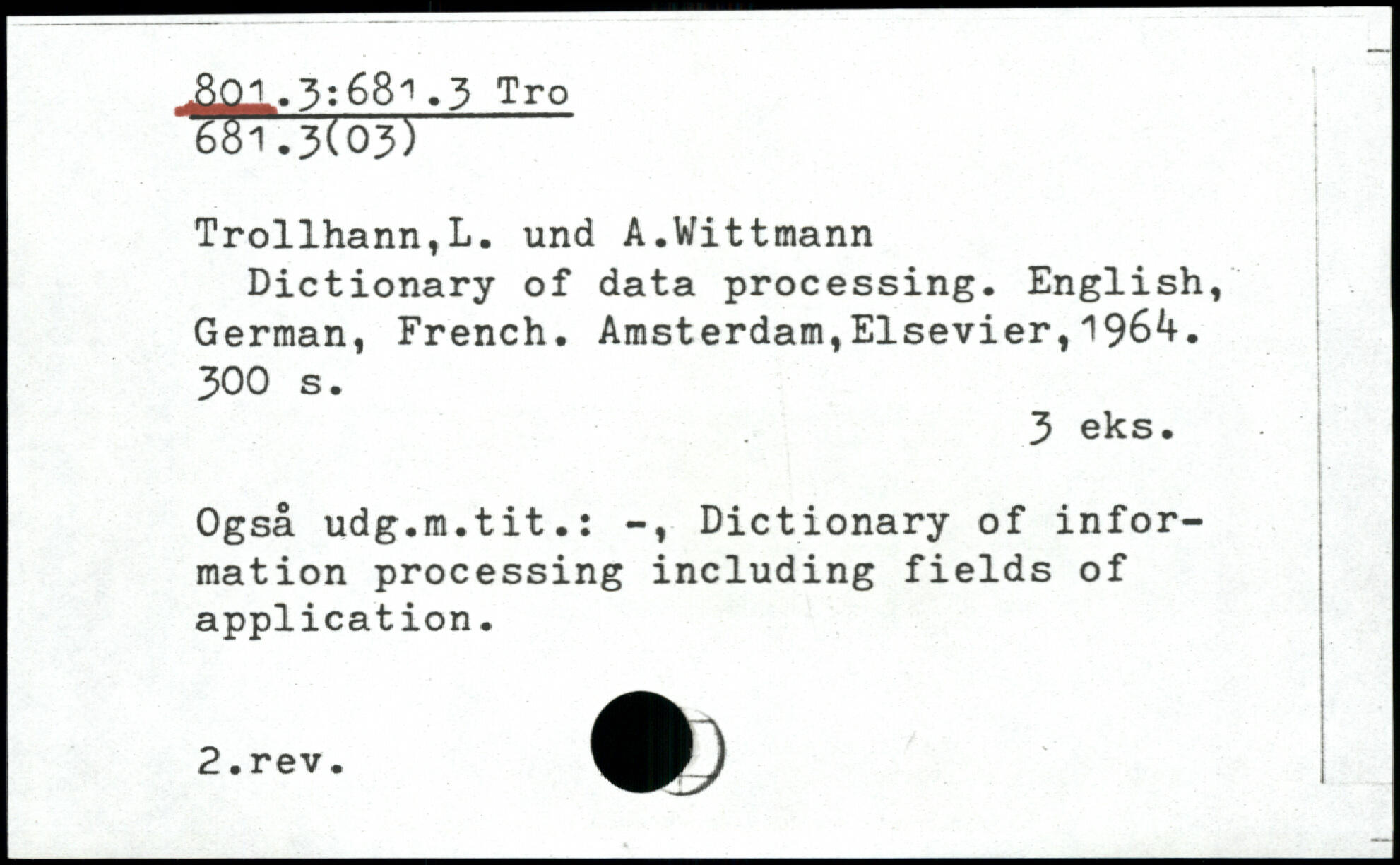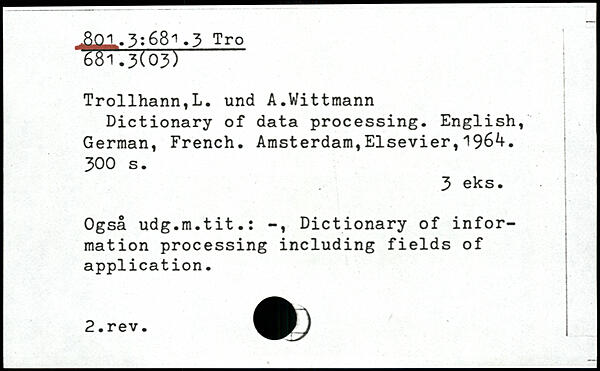 Dictionary of data processing. English, German, French. Amsterdam,Elsevier,196^.