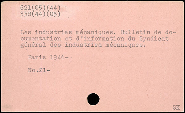 Les industries mécaniques. Bulletin de documentation et. d’information du Syndicat général des industries mécaniques.