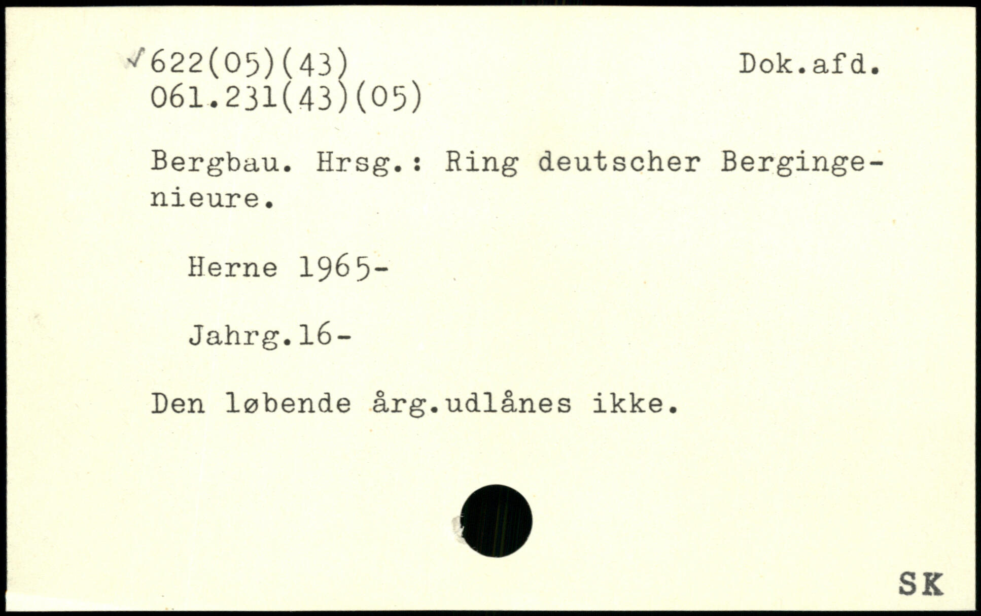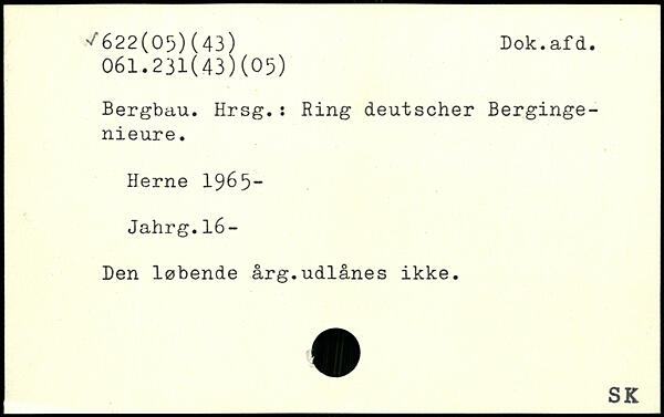 Bergbau. Hrsg.: Ring deutscher Bergingenieure. Herne 1965- Jahrg.l6- Den løbende årg.udlånes ikke.