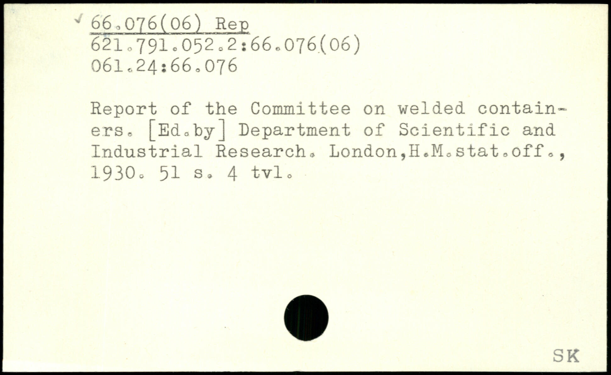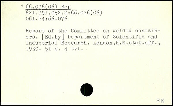 Report of the Committee on welded containers, [Edoby] Department of Scientific and Industrial Research, London,H.MoStat,off,, 1930a