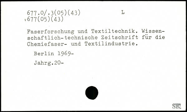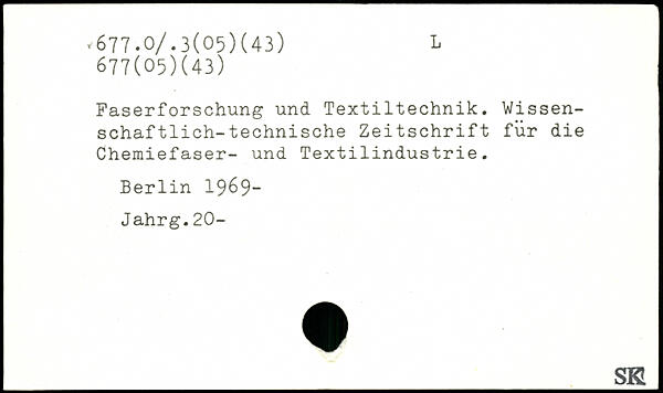 Faserforschung und Textiltechnik. Wissenschaftlich-technische Zeitschrift für die Chemiefaser- und Textilindustrie.