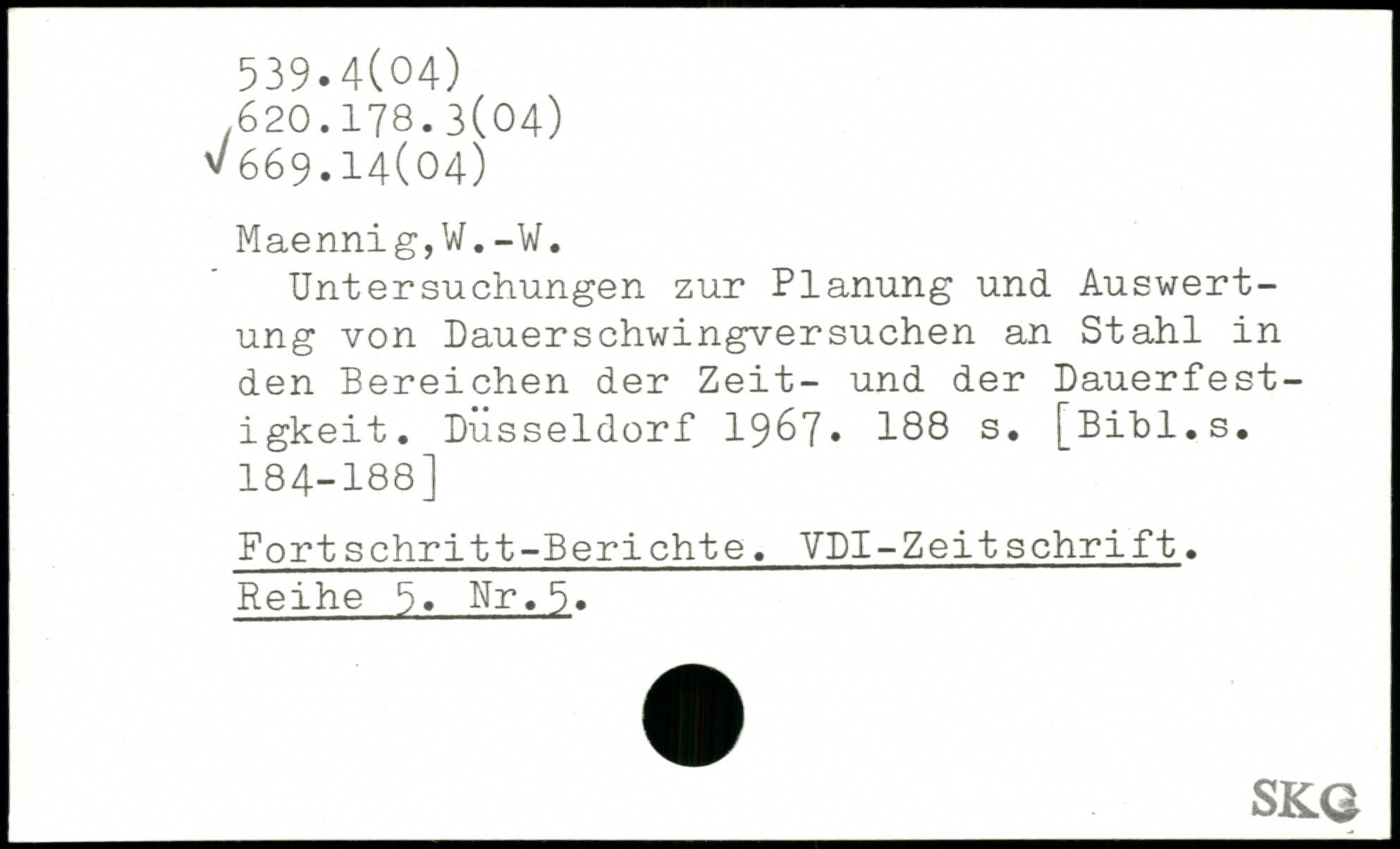 Untersuchungen zur Planung und Auswertung von Dauerschwingversuchen an Stahl in den Bereichen der Zeit- und der Dauerfestigkeit. Düsseldorf 1967