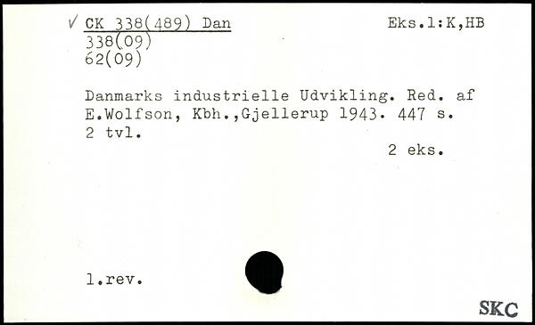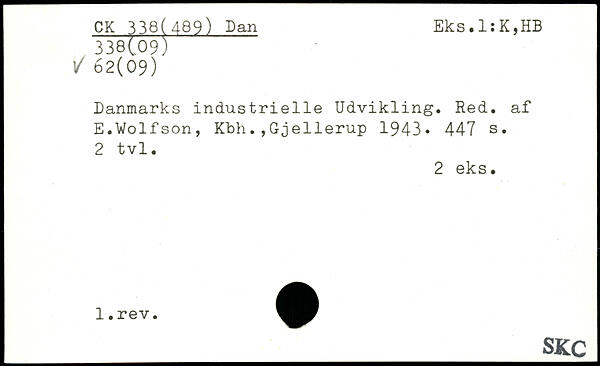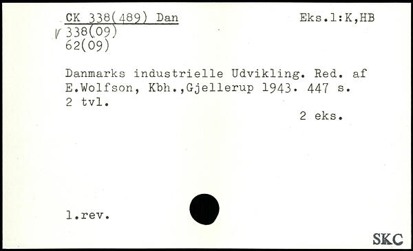 Danmarks industrielle Udvikling. Red. af E.Volfson, Kbh.,Gjellerup 1943