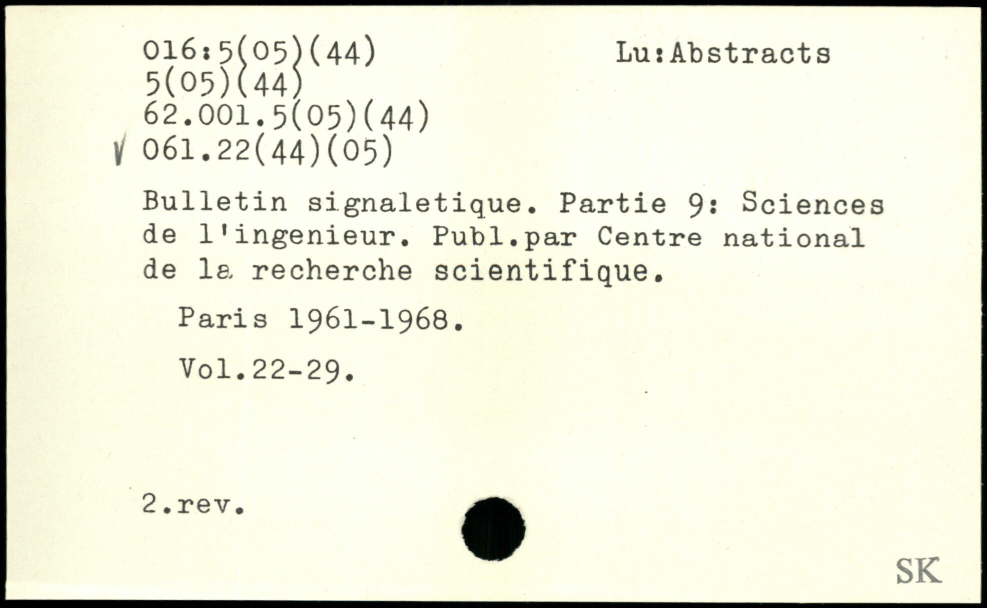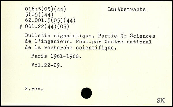 Bulletin signaletique. Partie 9. Sciences de 1.ingénieur. Publ.par Centre national de la recherche scientifique.