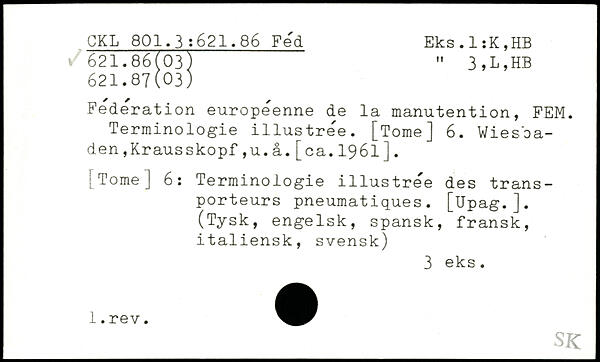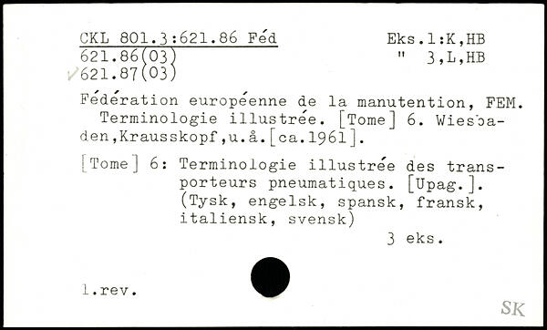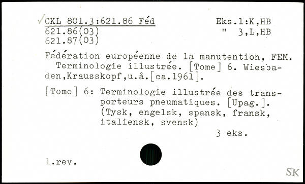 Federation européenne de la manutention, FEM. Terminologie illustrée. [Tome] 6. Wiesbaden , Kraus skopf ,u. â.