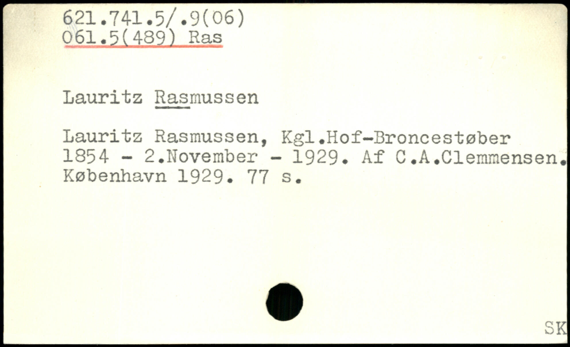 Lauritz Rasmussen Lauritz Rasmussen, Kgl.Hof-Broncestøber 1854 - 2.November - 1929. Af C.A.Clemmensen.