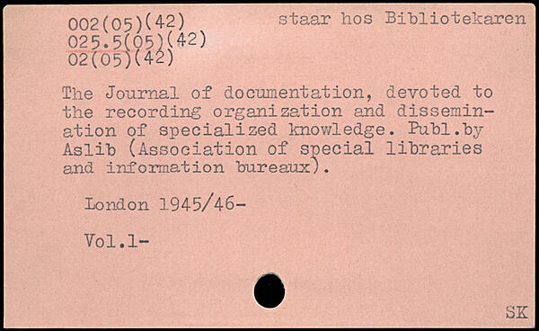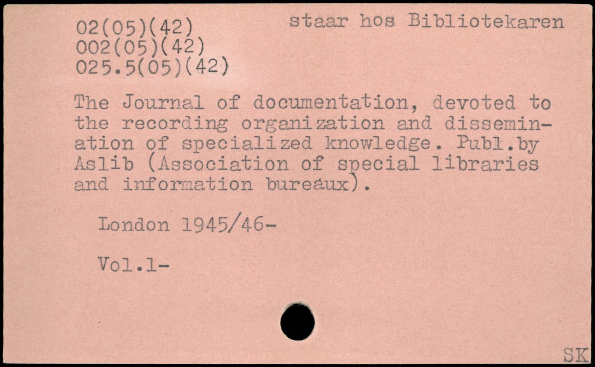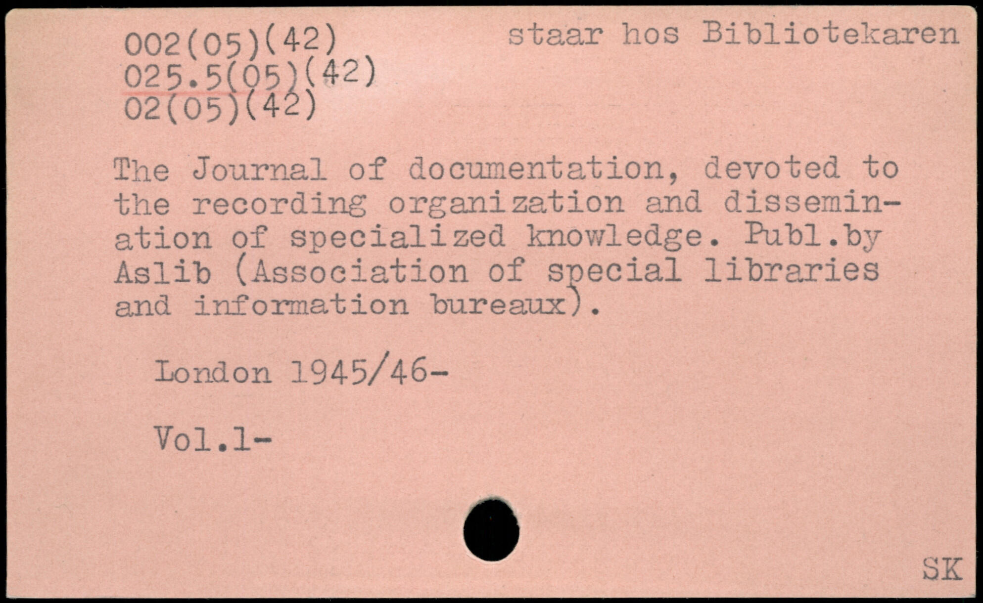 The Journal of documentation, devoted to the recording organization and dissemination of specialized knowledge.
