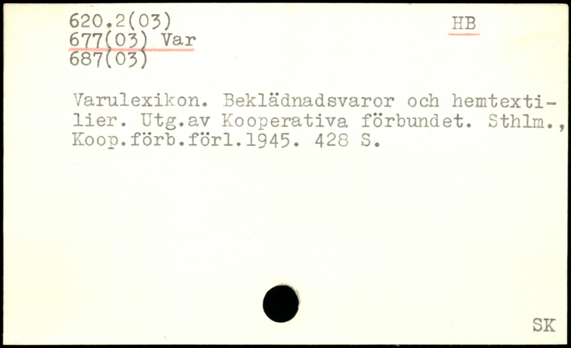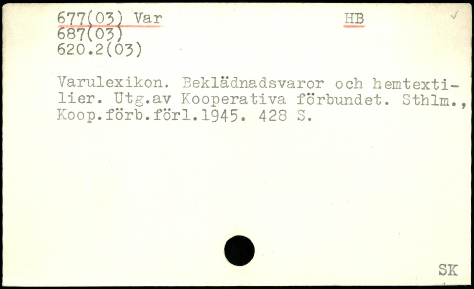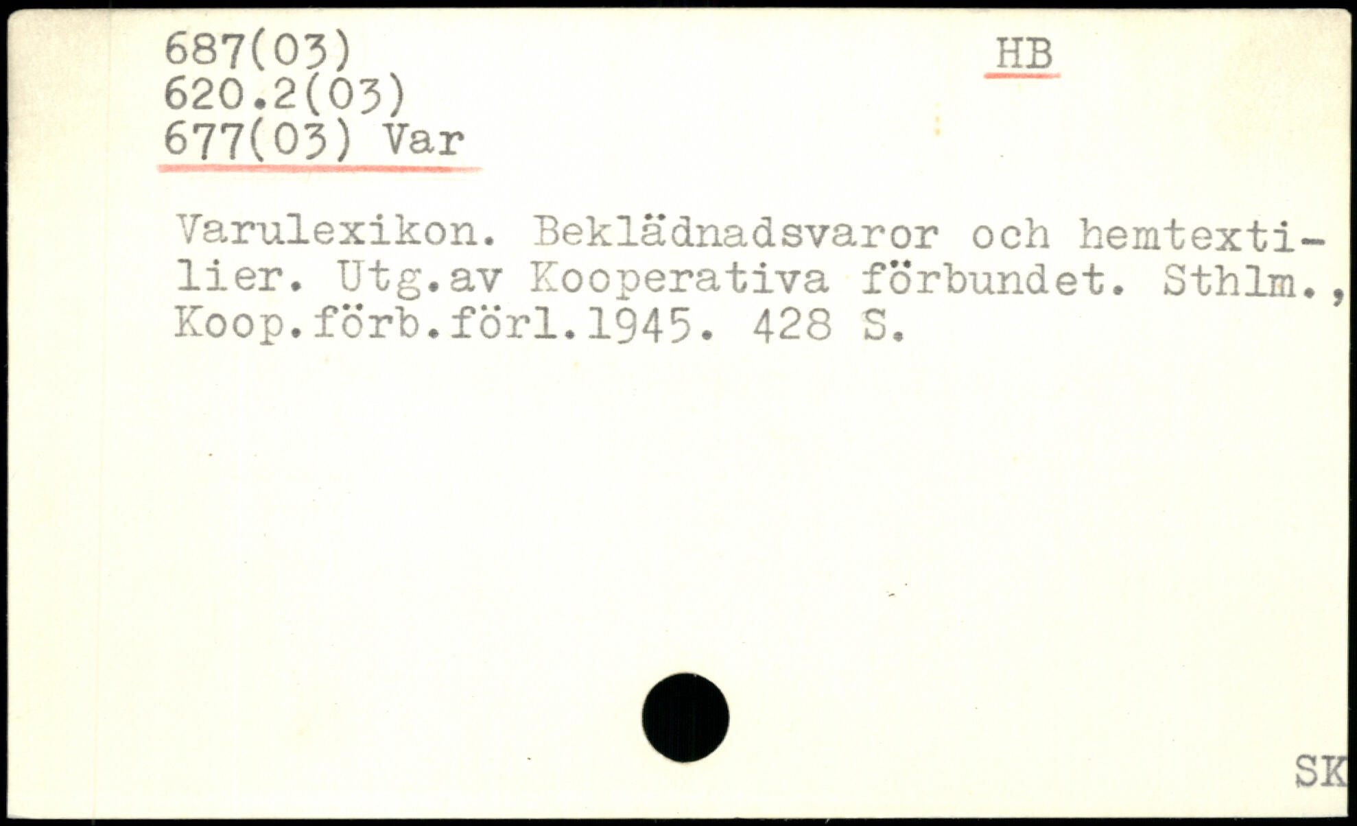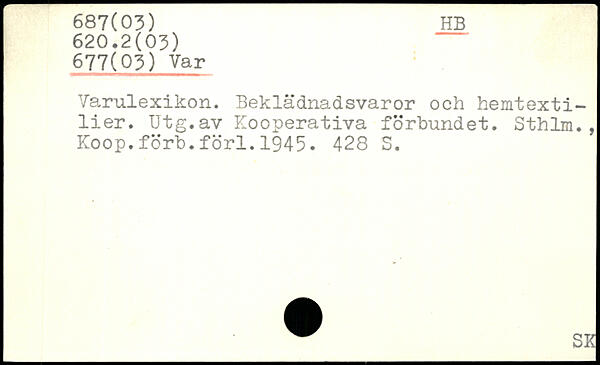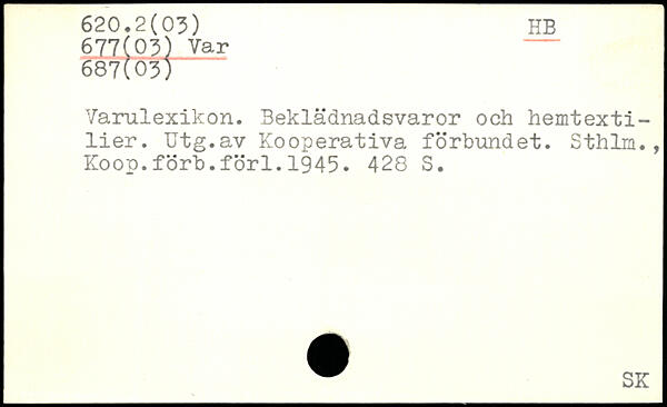 Varulexikon. Beklädnadsvaror och hemtextilier. Utg.av Kooperativa förbundet. Sthlm., Koop.förb.förl.1945.