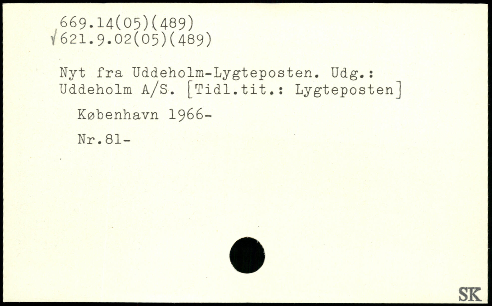 Nyt fra Uddeholm-Lygteposten. Udg.: Uddeholm a/S. [Tidl.tit.s Lygteposten] j