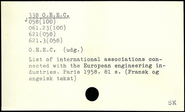 0.EoE.C. (udg,) List of international associations connected with the European engineering industries.