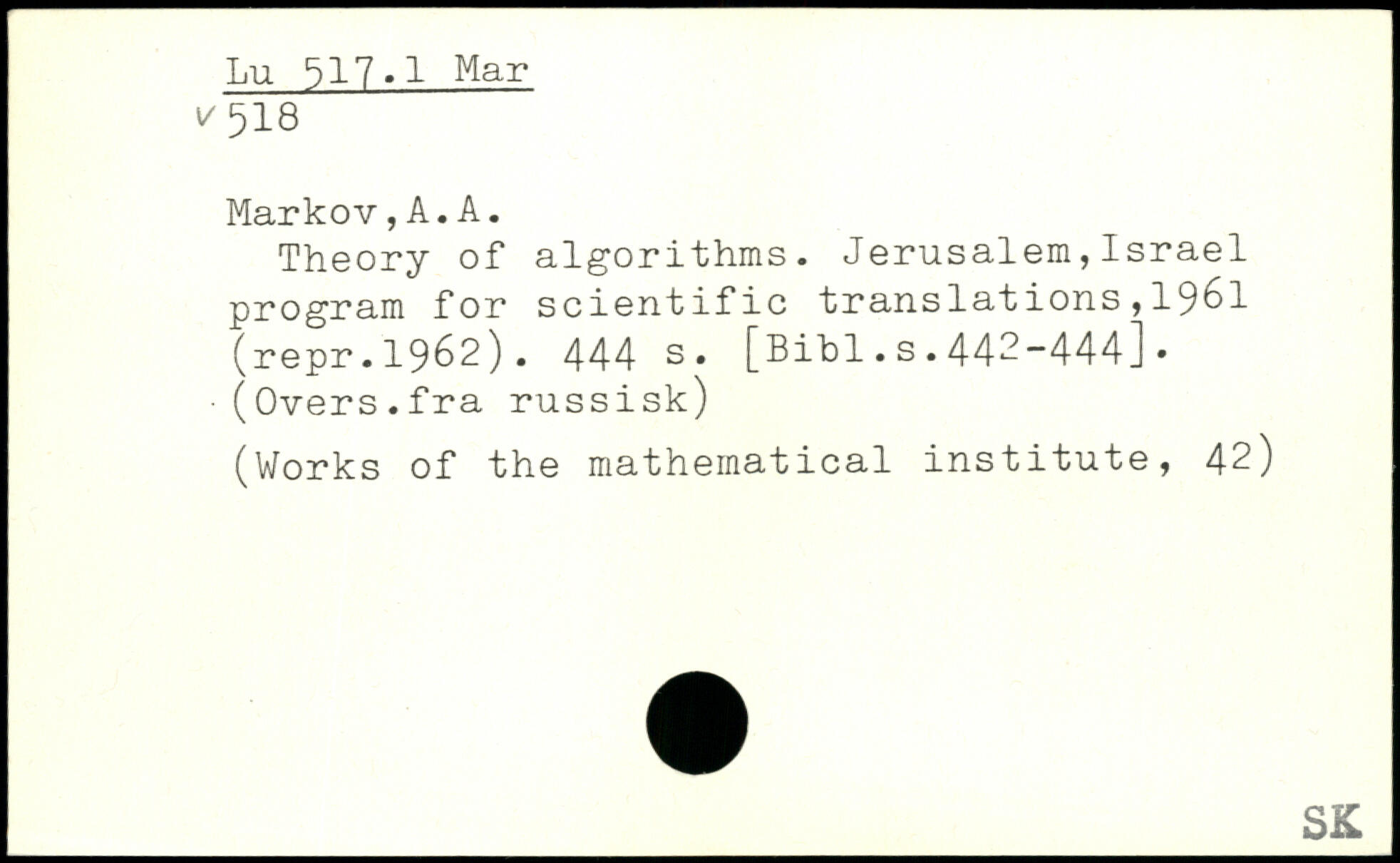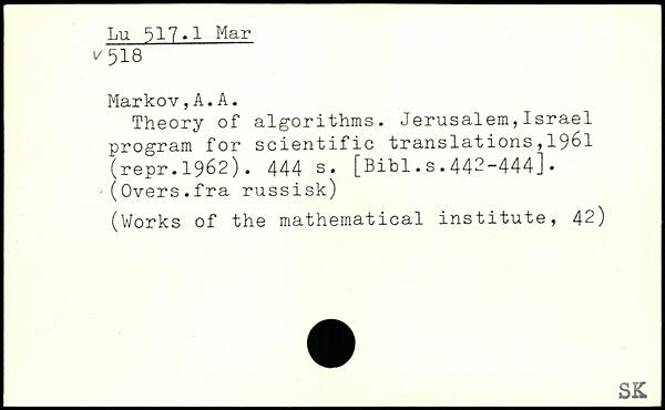 Theory of algorithms. Jerusalem,Israel program for scientific translations,1961 (repr. 1962).