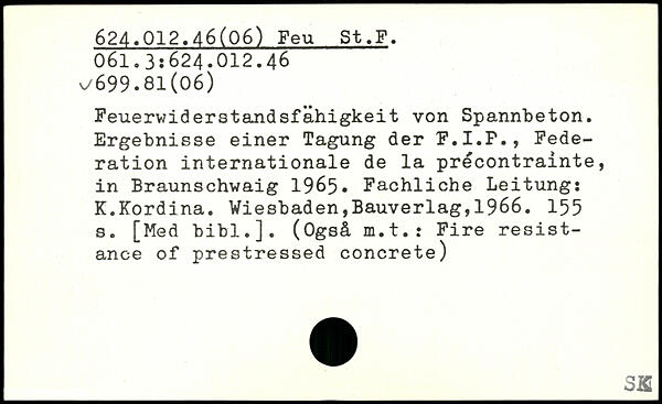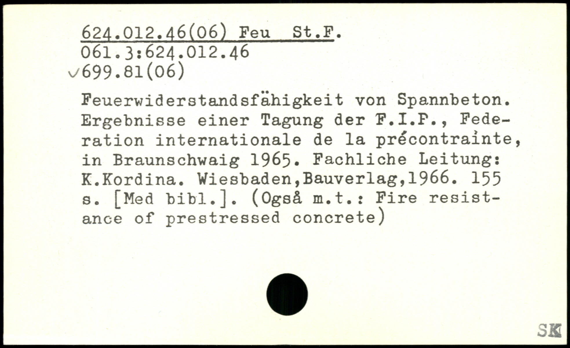 Feuerwiderstandsfähigkeit von Spannbeton. Ergebnisse einer Tagung der F.I.F., Federation internationale de la précontrainte, in Braunschwaig 1965. Fachliche Leitung: K.Kordina.