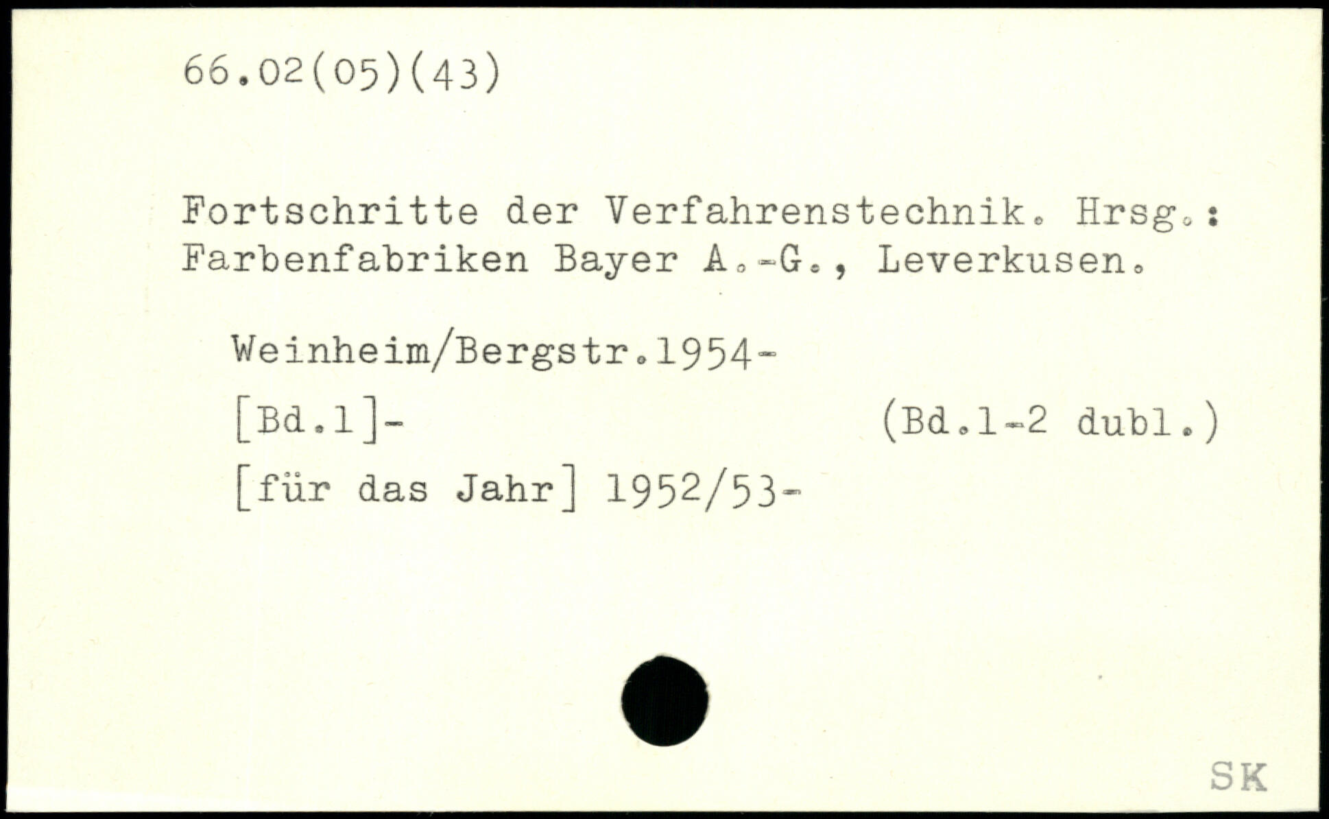 Fortschritte der Verfahrenstechnik. Hrsg,: Farbenfabriken Bayer A.-G., Leverkusen. Weinheim/Bergstr.1954“