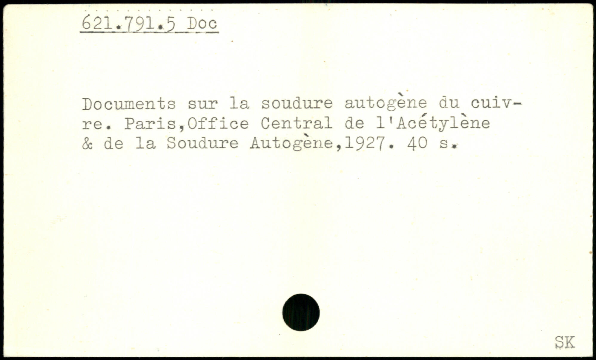 Documents sur la soudure autogène du cuivre. Paris,Office Central de l'Acétylène & de la Soudure Autogène,1927.