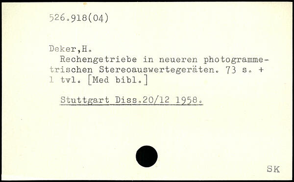 Rechengetriebe in neueren photogramme-trischen Stereoauswertegeräten