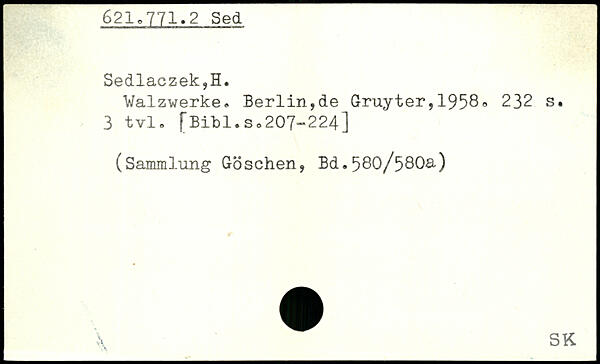 Walzwerke. Berlin,de Gruyter,1958