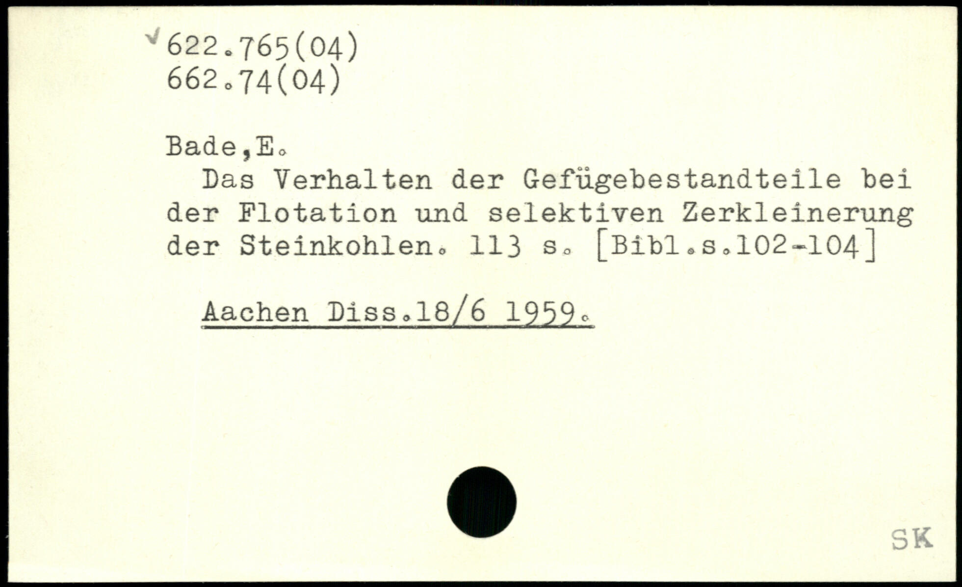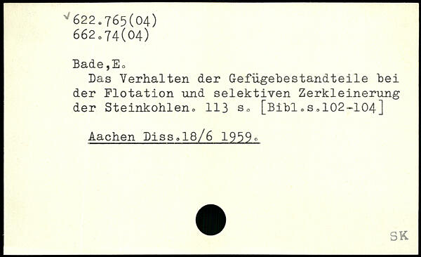 Bade jE, Das Verhalten der Gefügebestandteile bei der Flotation und selektiven Zerkleinerung der Steinkohlen