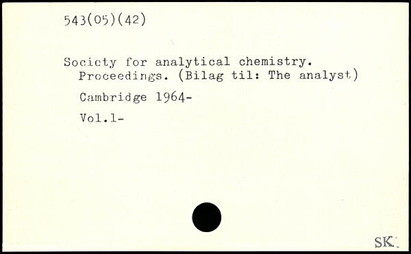 Society for analytical chemistry. Proceedings. (Bilag til: The analyst)