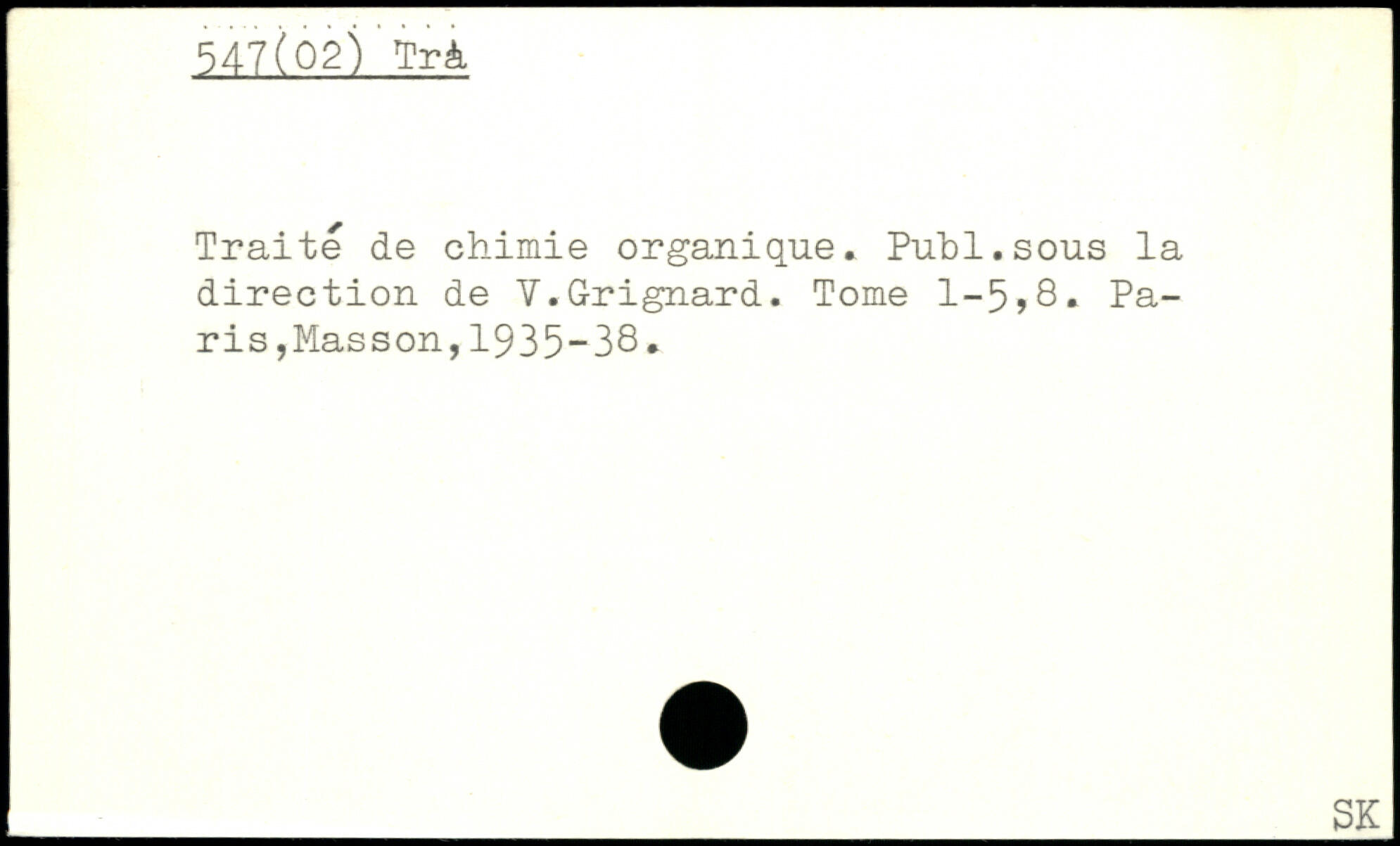 Traite de chimie organique. Publ.sous la direction de V.Grignard. Tome 1-5,8.