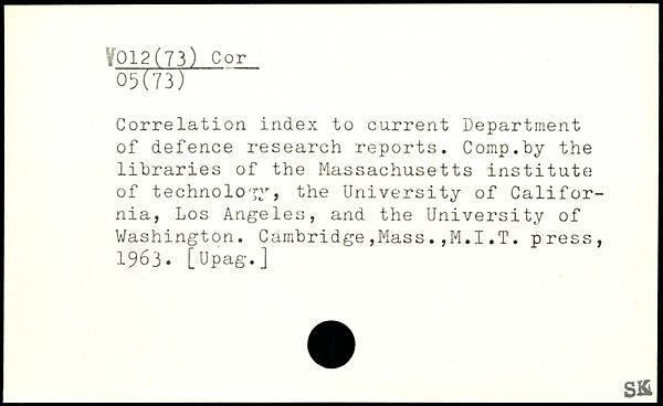 Correlation index to current Department of defence research reports. Comp.by the libraries of the Massachusetts institute of technology, the University of California, Los Angeles, and the University of Washington.
