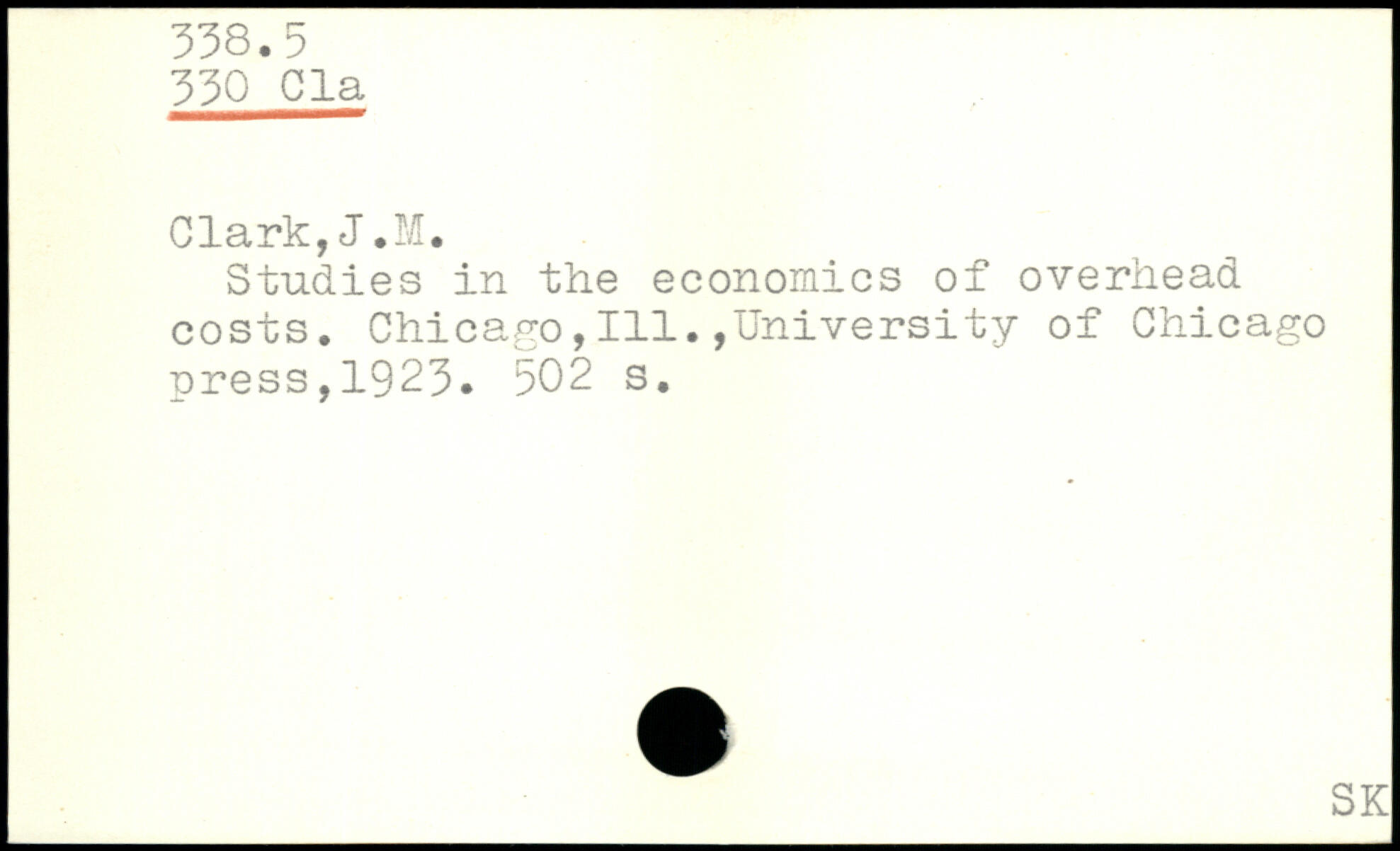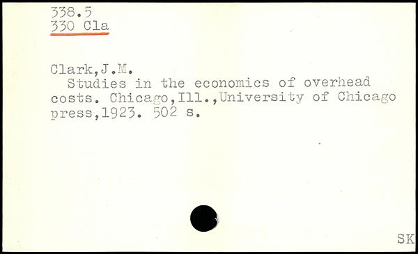 Studies in the economics of overhead costs. Chicago,111.,University of Chicago press,1923.