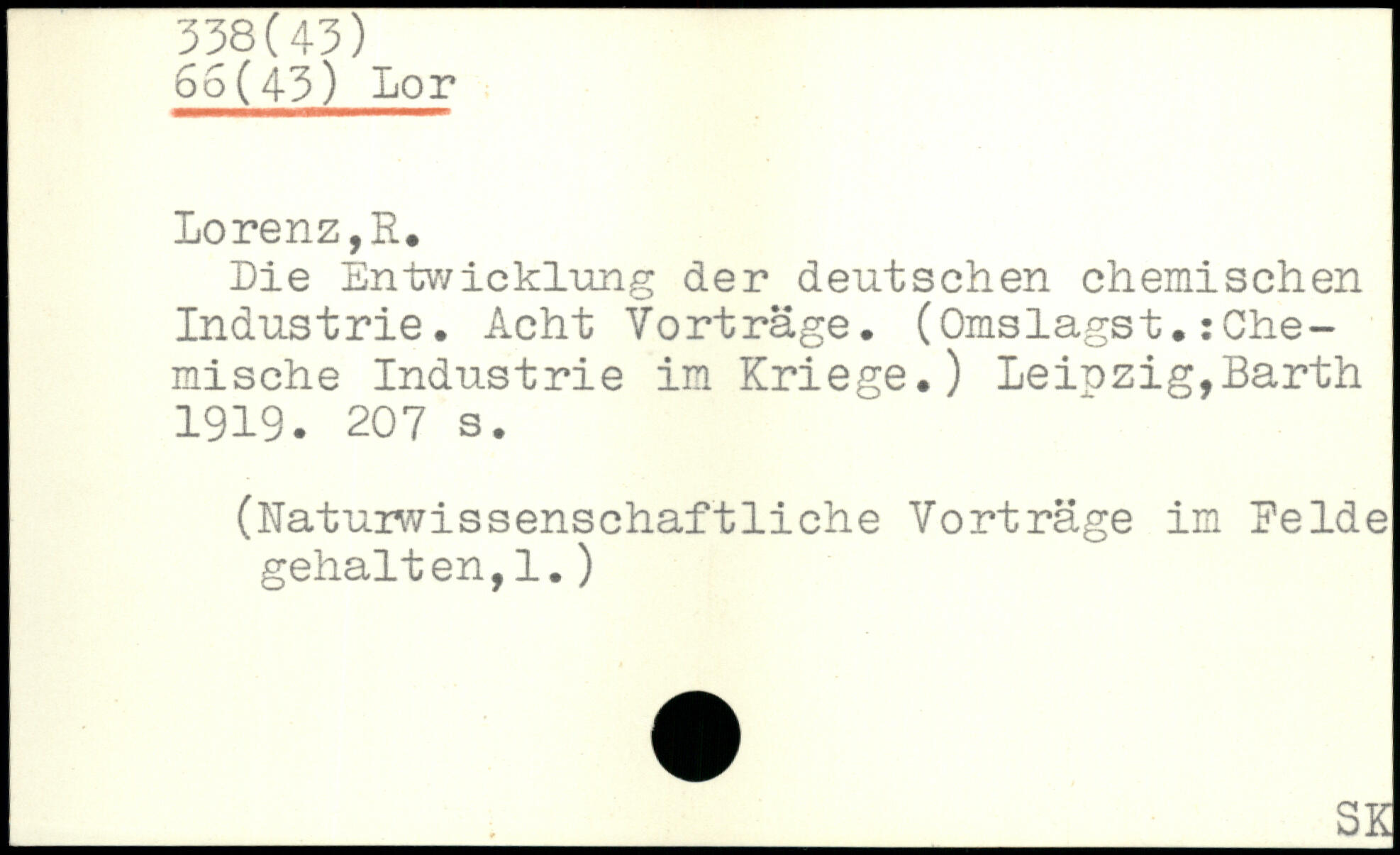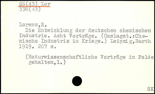 Lie Entwicklung der deutschen chemischen Industrie. Acht Vorträge. (OmslagstChemische Industrie im Kriege.) Lein zL g,Barth 1919.
