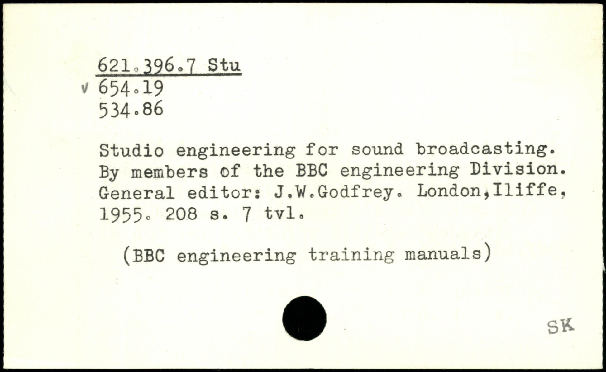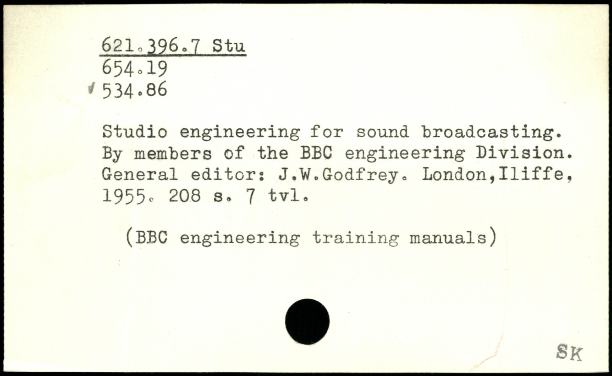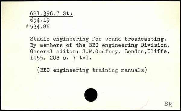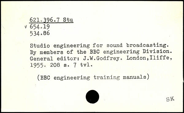Studio engineering for sound broadcasting. By members of the BBC engineering Division. General editor: J.V.Godfrey.