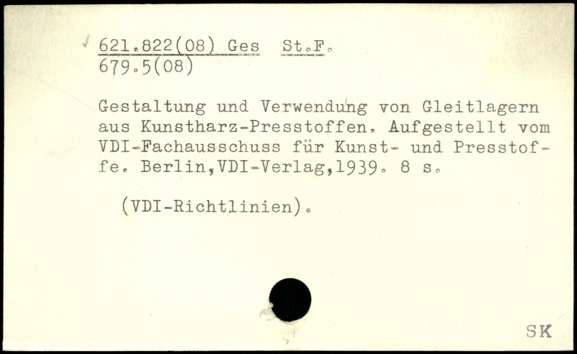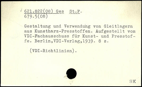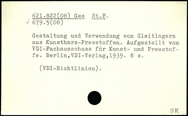 Gestaltung und Verwendung von Gleitlagern aus Kunstharz-Presstoffen. Aufgestellt vom VDI-Fachausschuss für Kunst- und Presstof- fe.