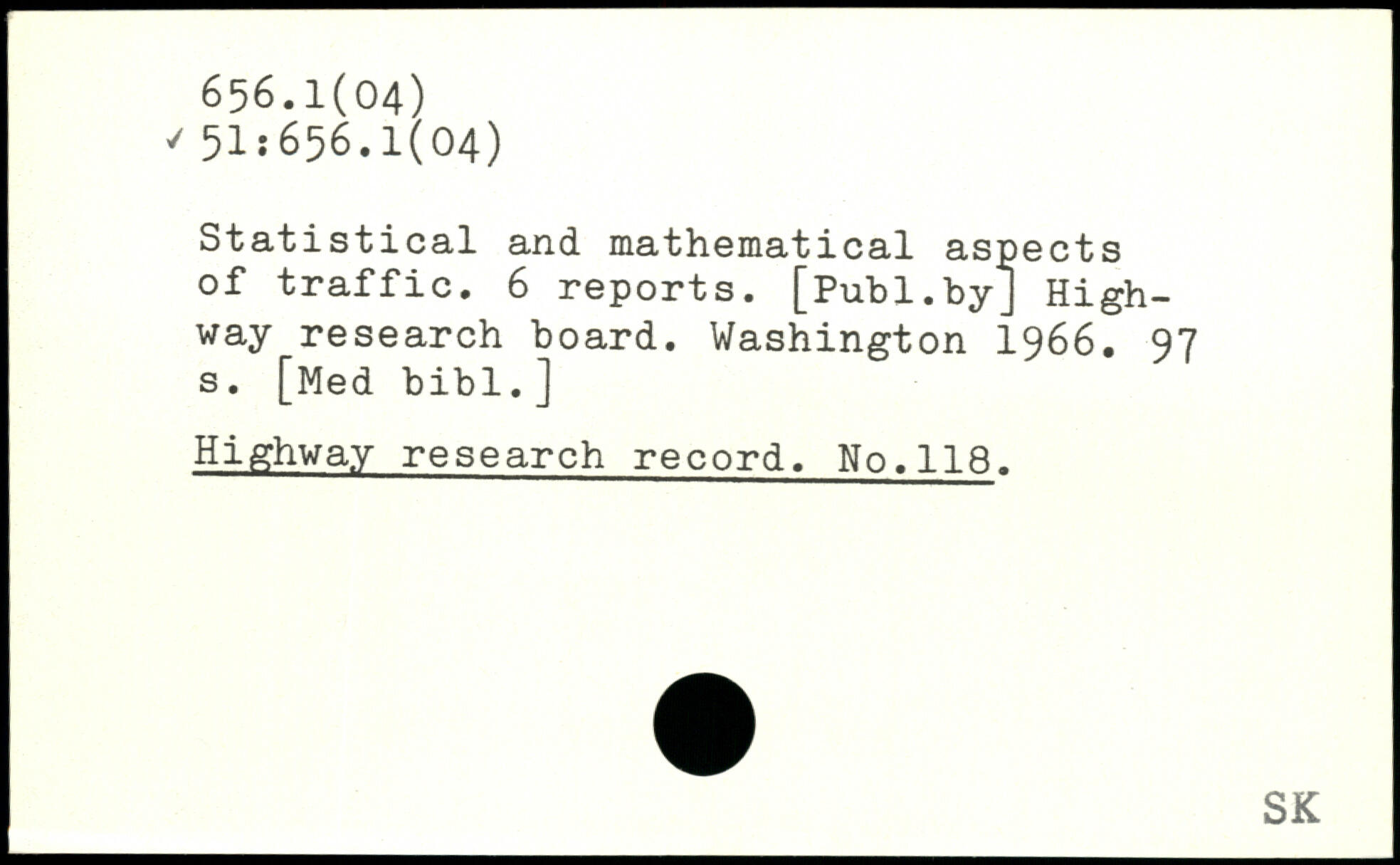 Statistical and mathematical aspects of traffic. 6 reports.