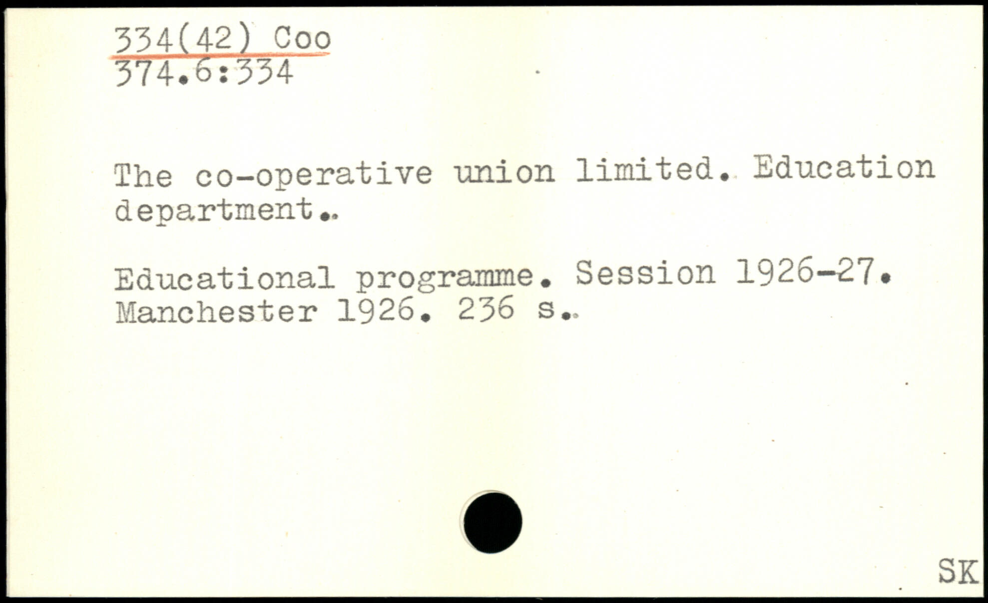 The co-operative union limited. Education department.. Educational programme. Session 1926-27.
