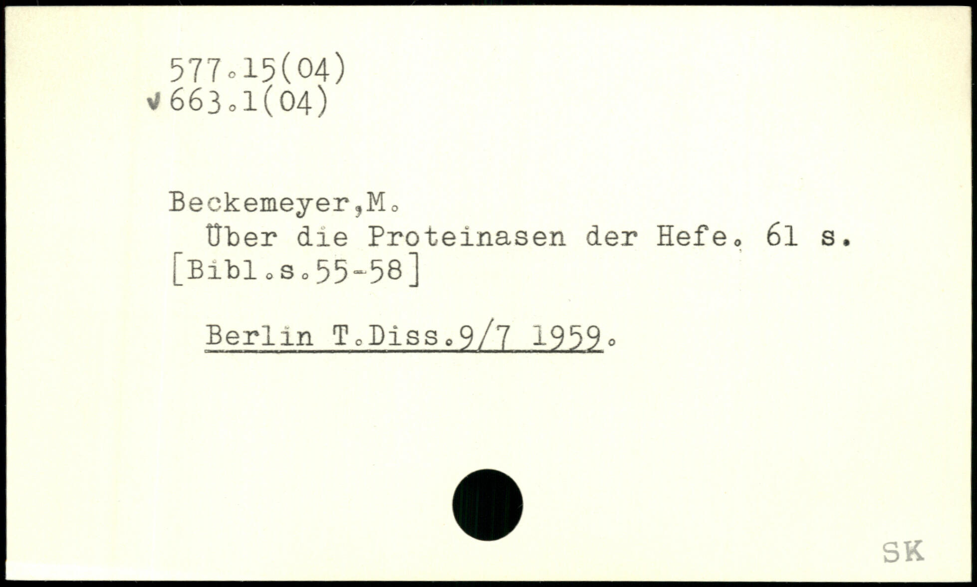 Beckemeyer?Mo über die Proteinasen der Hefe, 6l s.