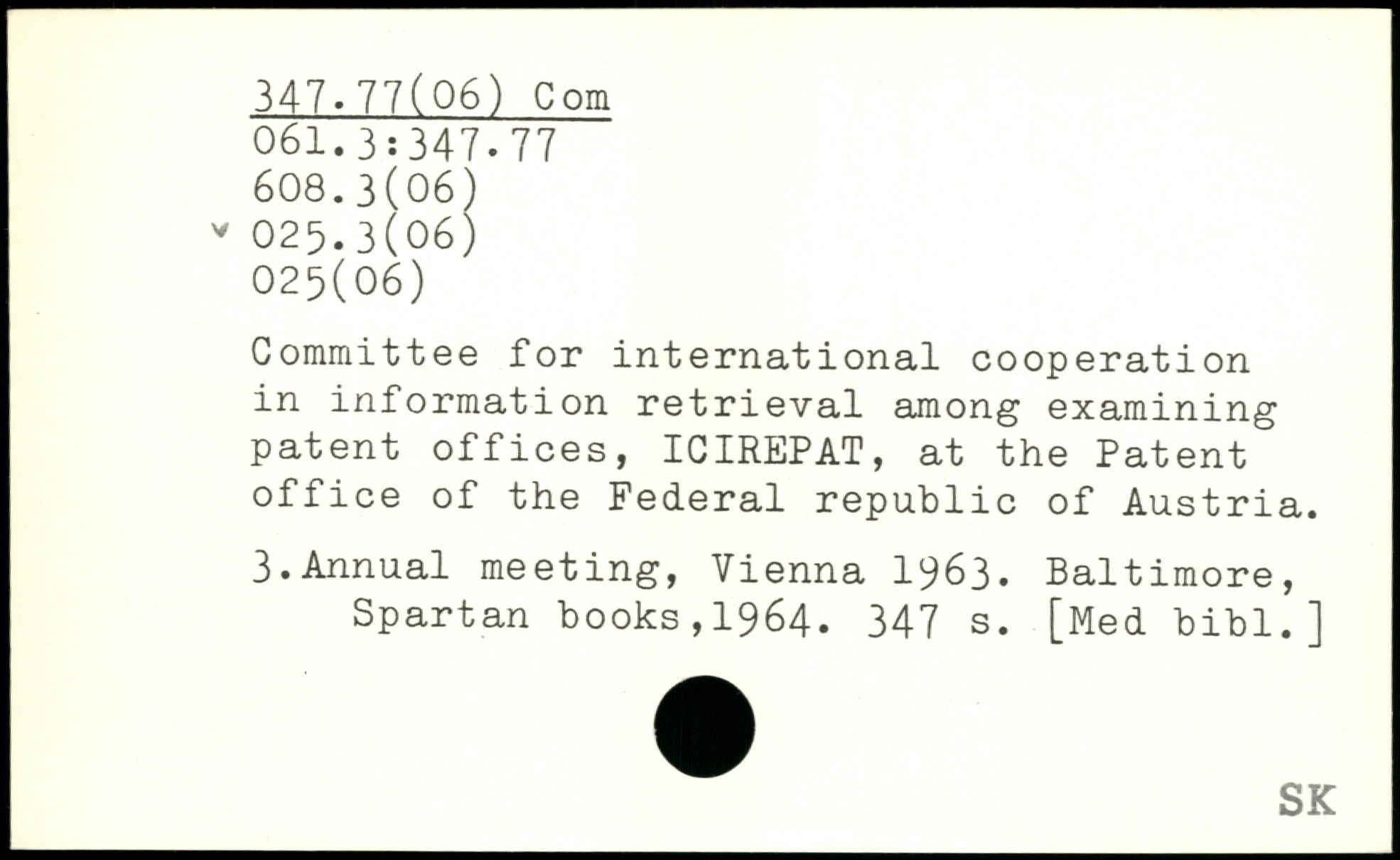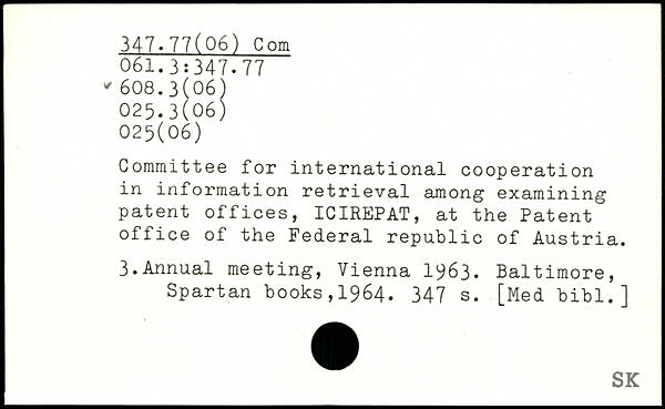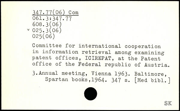 Committee for international cooperation in information retrieval among examining patent offices, ICIREPAT, at the Patent office of the Federal republic of Austria. 3.Annual meeting, Vienna 1963.