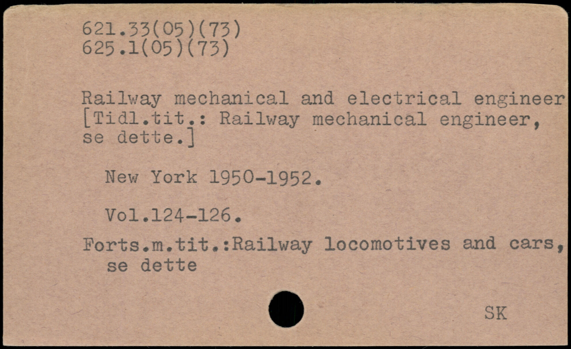 Railway mechanical and electrical engineer [Tidl.tit.: Railv/ay mechanical engineer, se dette.]