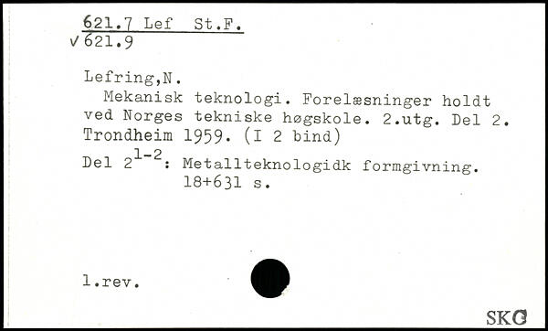 Mekanisk teknologi. Forelæsninger holdt ved Norges tekniske høgskole. 2.utg. Del 2.