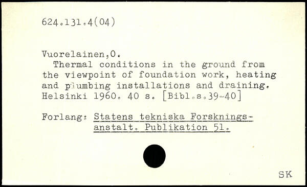 Thermal conditions in the ground from the viewpoint of foundation work, heating and plumbing installations and draining.