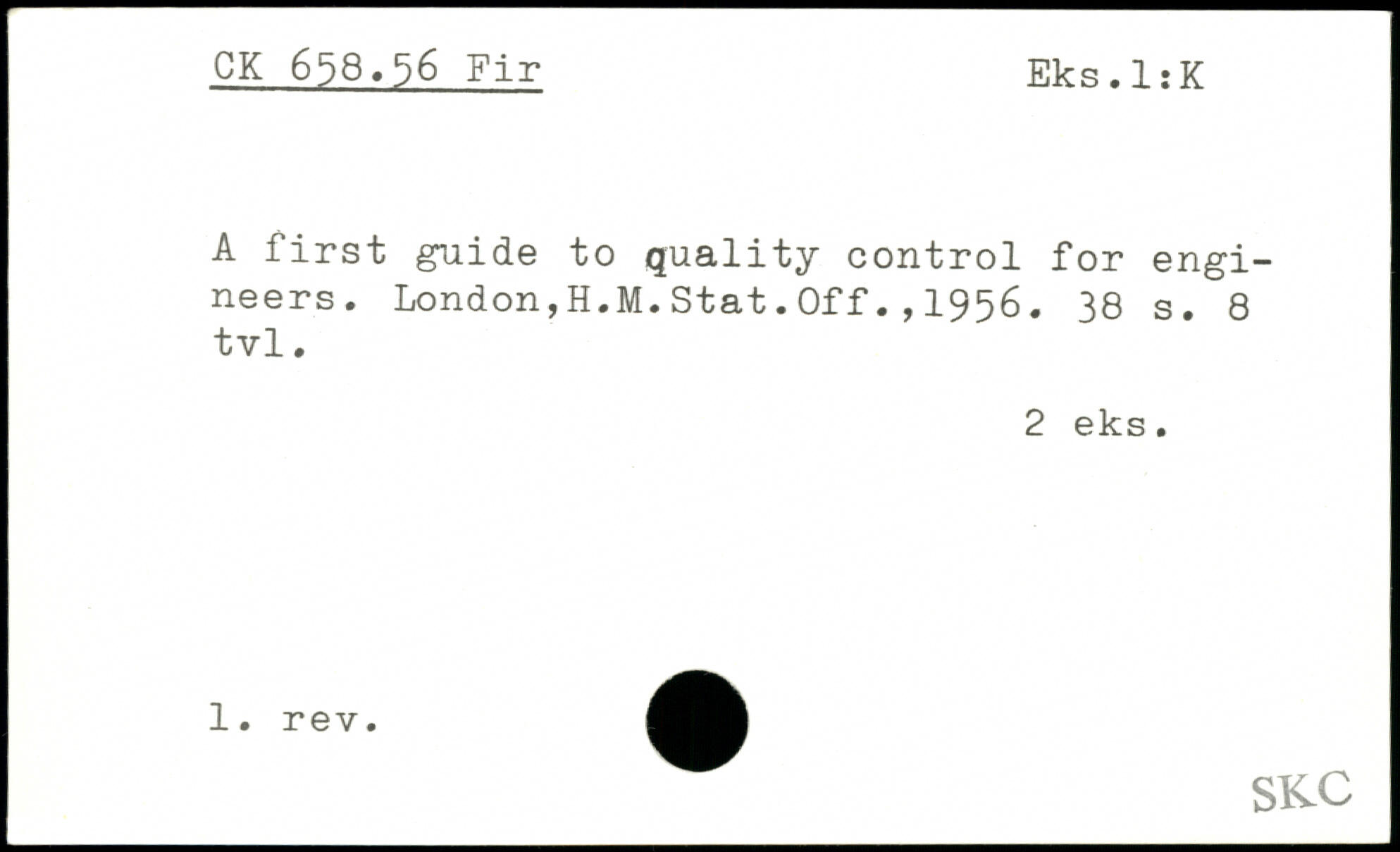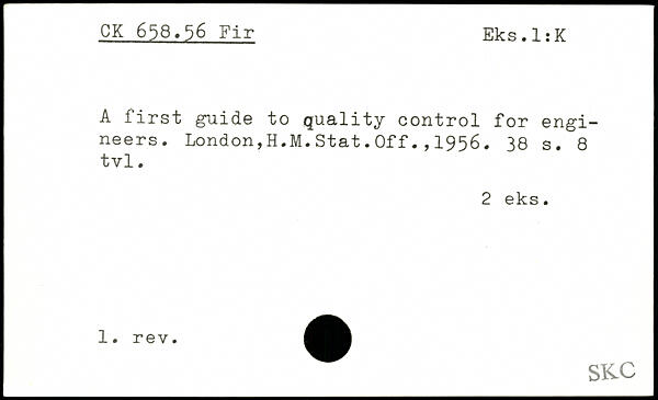 A first guide to quality control for engineers. London,H.M.Stat.Off1956.