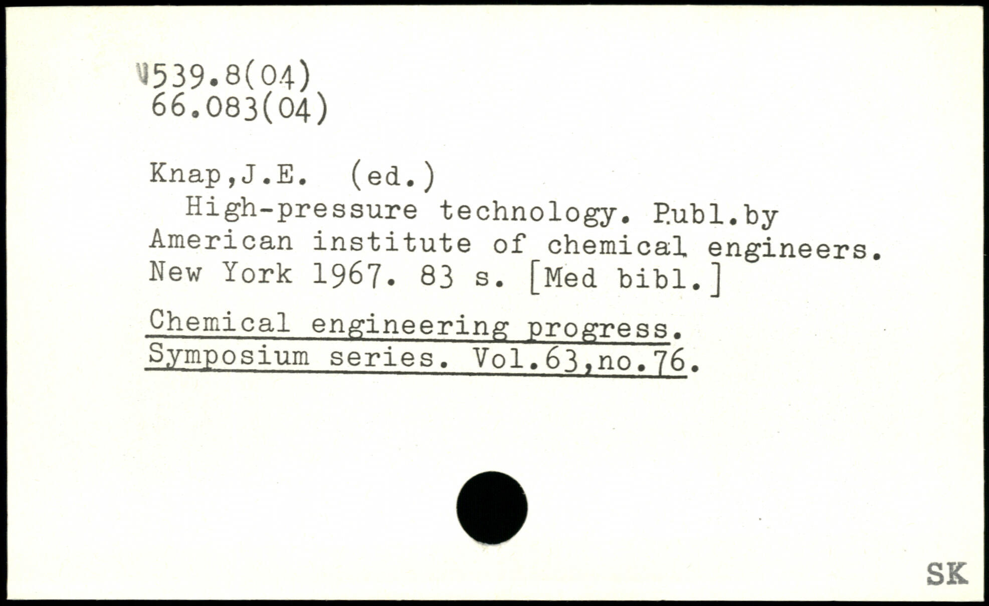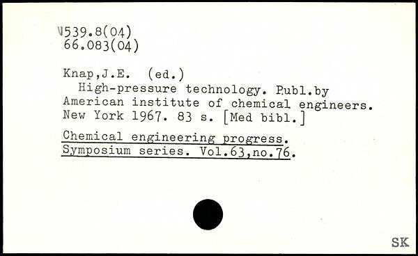 High-pressure technology. P.ubl.by American institute of chemical engineers.