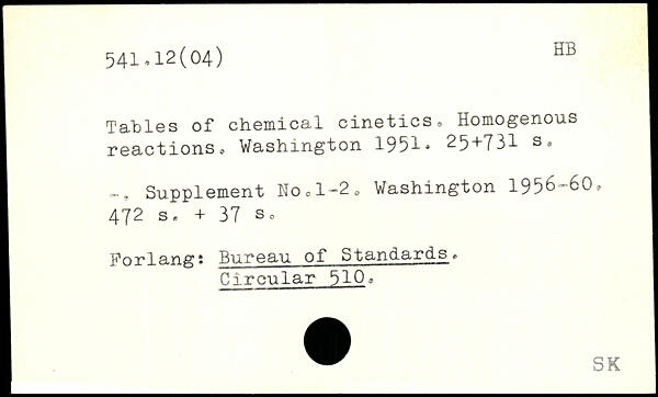 Tables of chemical cinetics. Homogenous reactionso