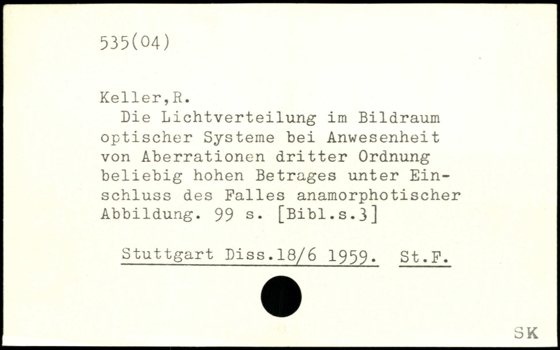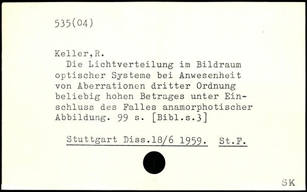 Die Lichtverteilung im Bildraum optischer Systeme bei Anwesenheit von Aberrationen dritter Ordnung beliebig hohen Betrages unter Einschluss des Falles anamorphotischer Abbildung.
