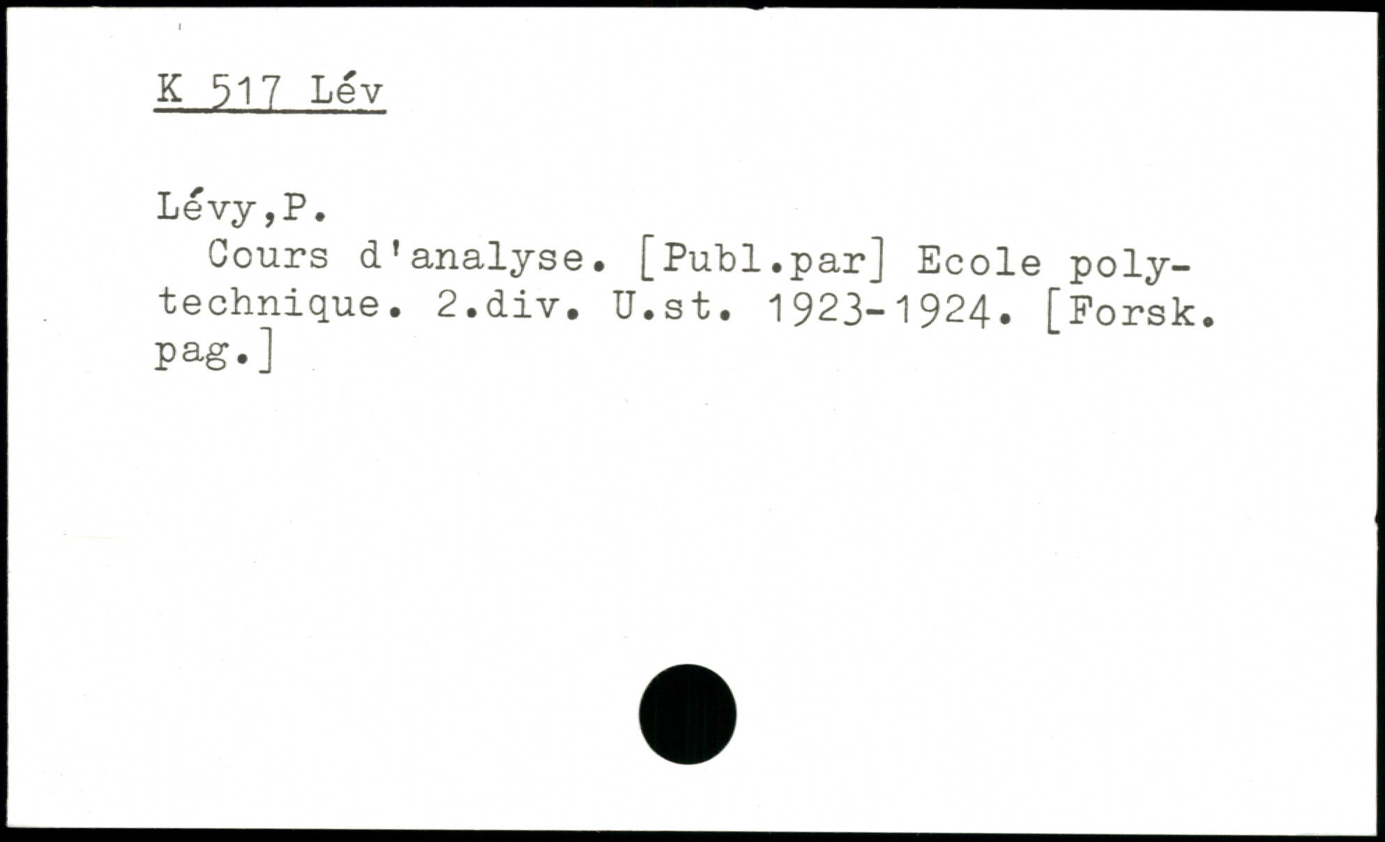 Cours d'analyse. [Publ.par] Ecole polytechnique. 2.div. U.st. 1923-1924.