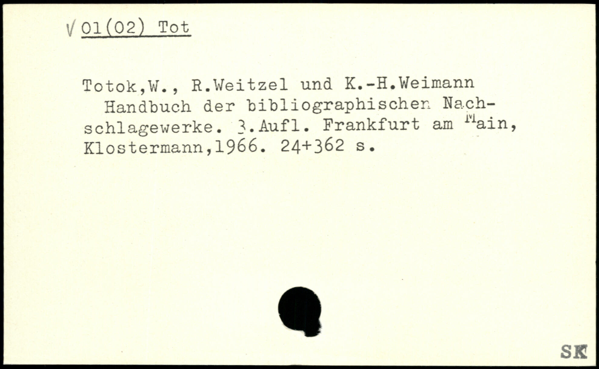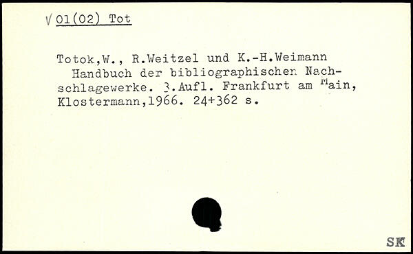 Totok,V., R.Weitzel und K.-H.Weimann Handbuch der bibliographischen Nachschlagewerke.