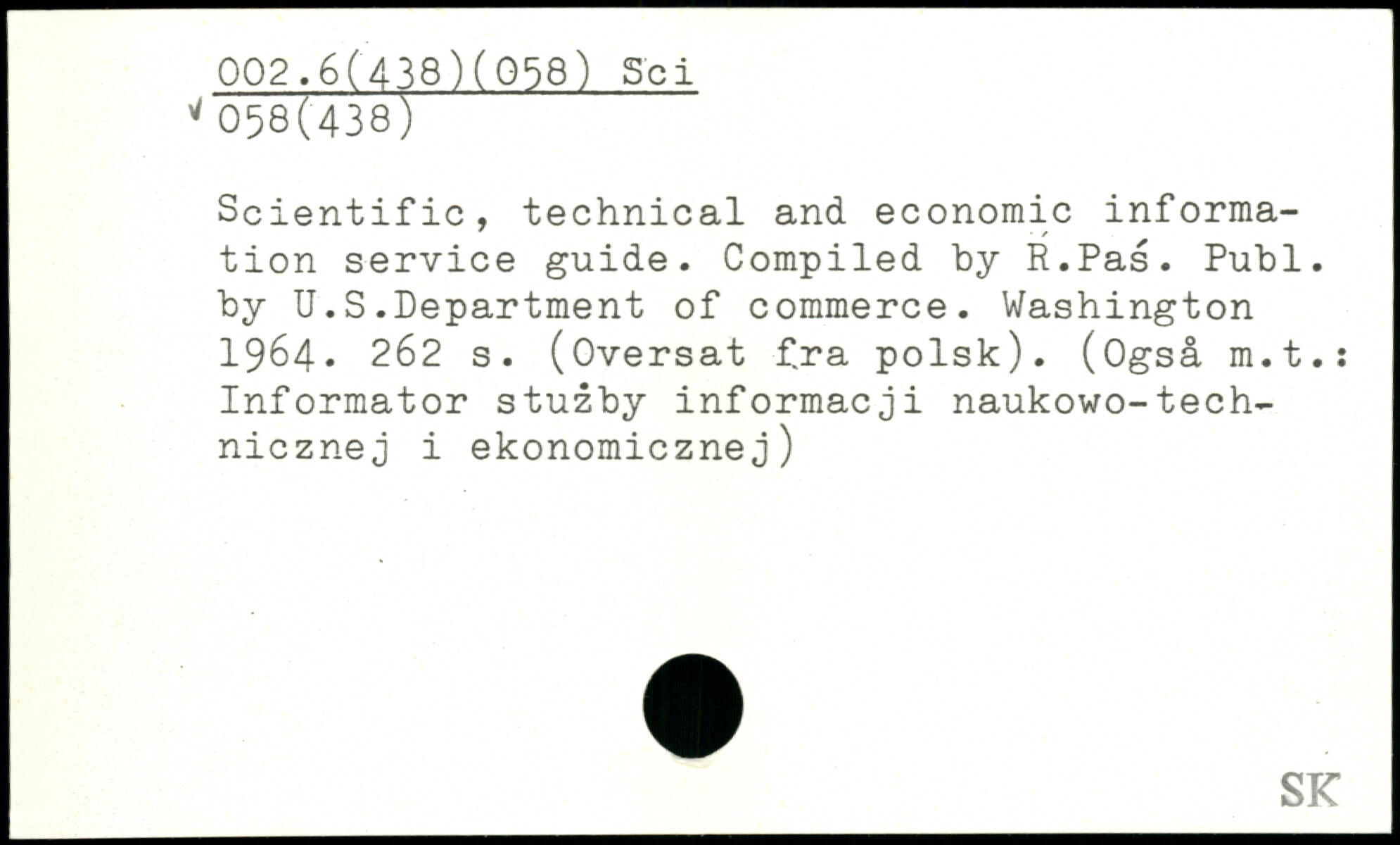 Scientific, technical and economic information service guide. Compiled by R.Pas.