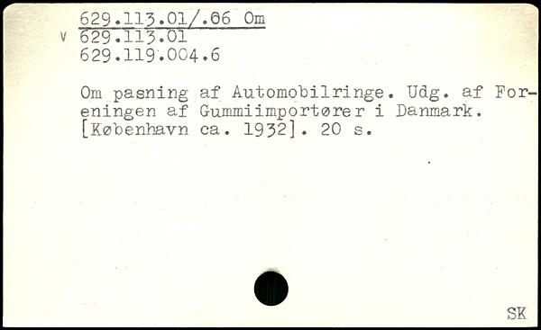 Om pasning af Automobilringe. Udg. af Foreningen af Gummi import øre r i Danmark. [København ca. 1932].