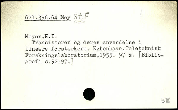 Transistorer og deres anvendelse i lineære forstærkere, København,Teleteknisk Forskningslaboratorium.1955-