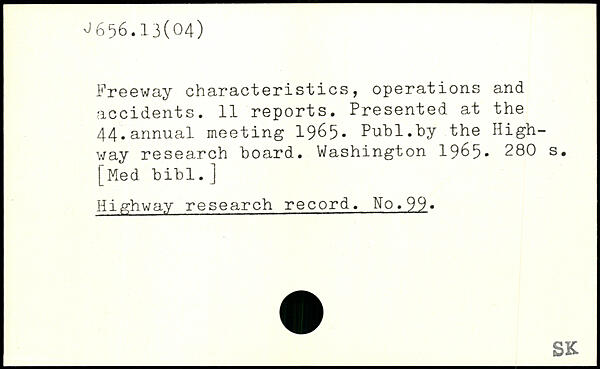 Freeway characteristics, operations and accidents. 11 reports. Presented at the 44.annual meeting 19^5.